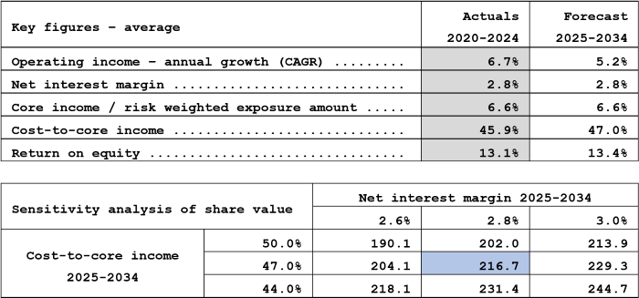 - Dividend payments amount to 60% of total comprehensive income for the previous year in 2025 and 65% thereafter over the forecast period, in line with the bank’s dividend and capital ratio targets.